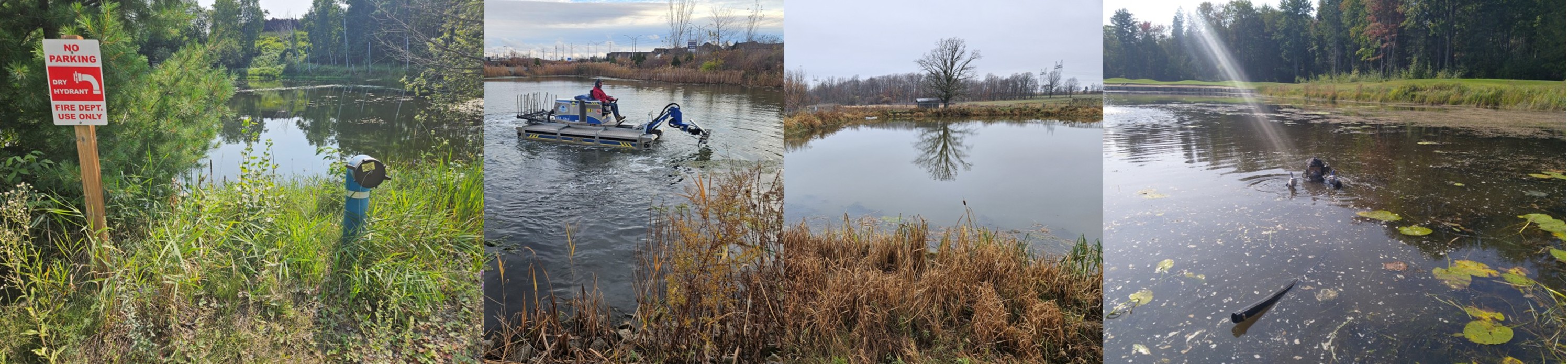 Removal of weeds and debris from pond areas.